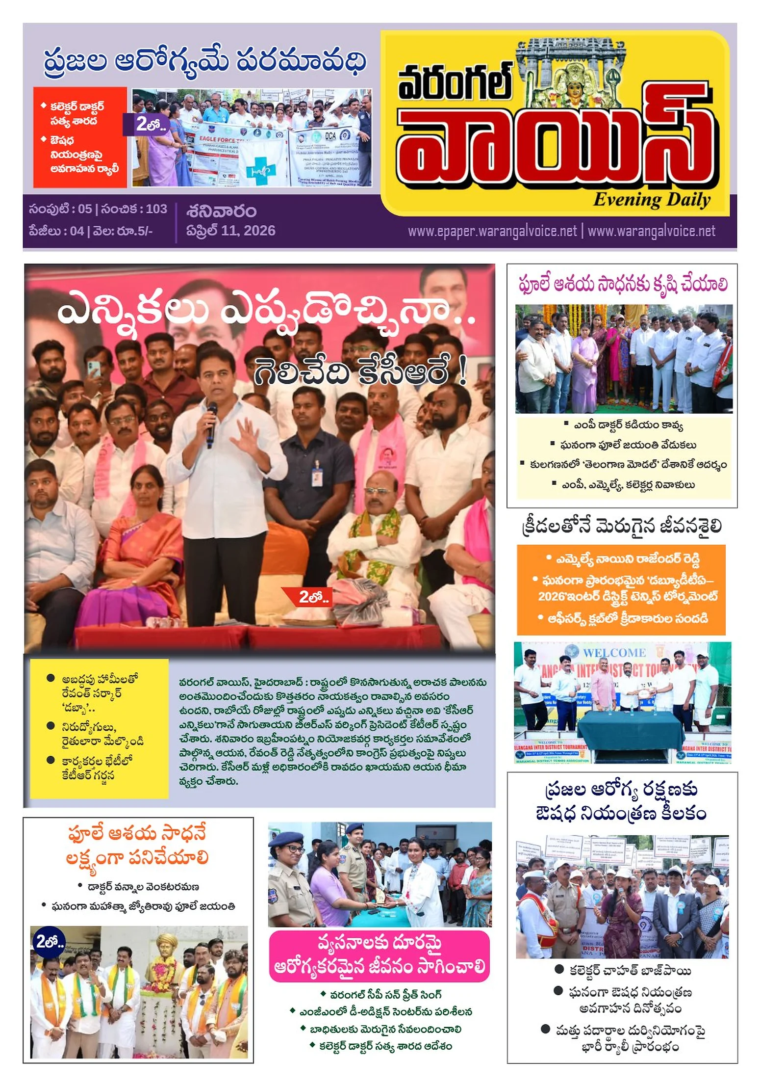 కాంగ్రెస్ కూటమి దిష్టిబొమ్మ దగ్ధంచలాన్లు లేవు.. కేవలం అవగాహనేజగిత్యాల కేసీఆర్ బహిరంగ సభను విజయవంతం చేయండిమహిళలు తమ కాళ్ల మీద తాము నిలబడాలికోటగుళ్ళ గోమాతలకు దాన బస్తాల వితరణ‘చలో కాళేశ్వరం – దేఖో మేడిగడ్డ’ఇరిగేషన్ శాఖకు కోర్టు షాక్మహిళా బిల్లును అడ్డుకోవడం చీకటి రోజుసమాజ సేవలో విద్యుత్ ఉద్యోగులుడీసీసీబీ ఉద్యోగుల ఇన్సెంటివ్ రికవరీ నిర్ణయం అన్యాయం