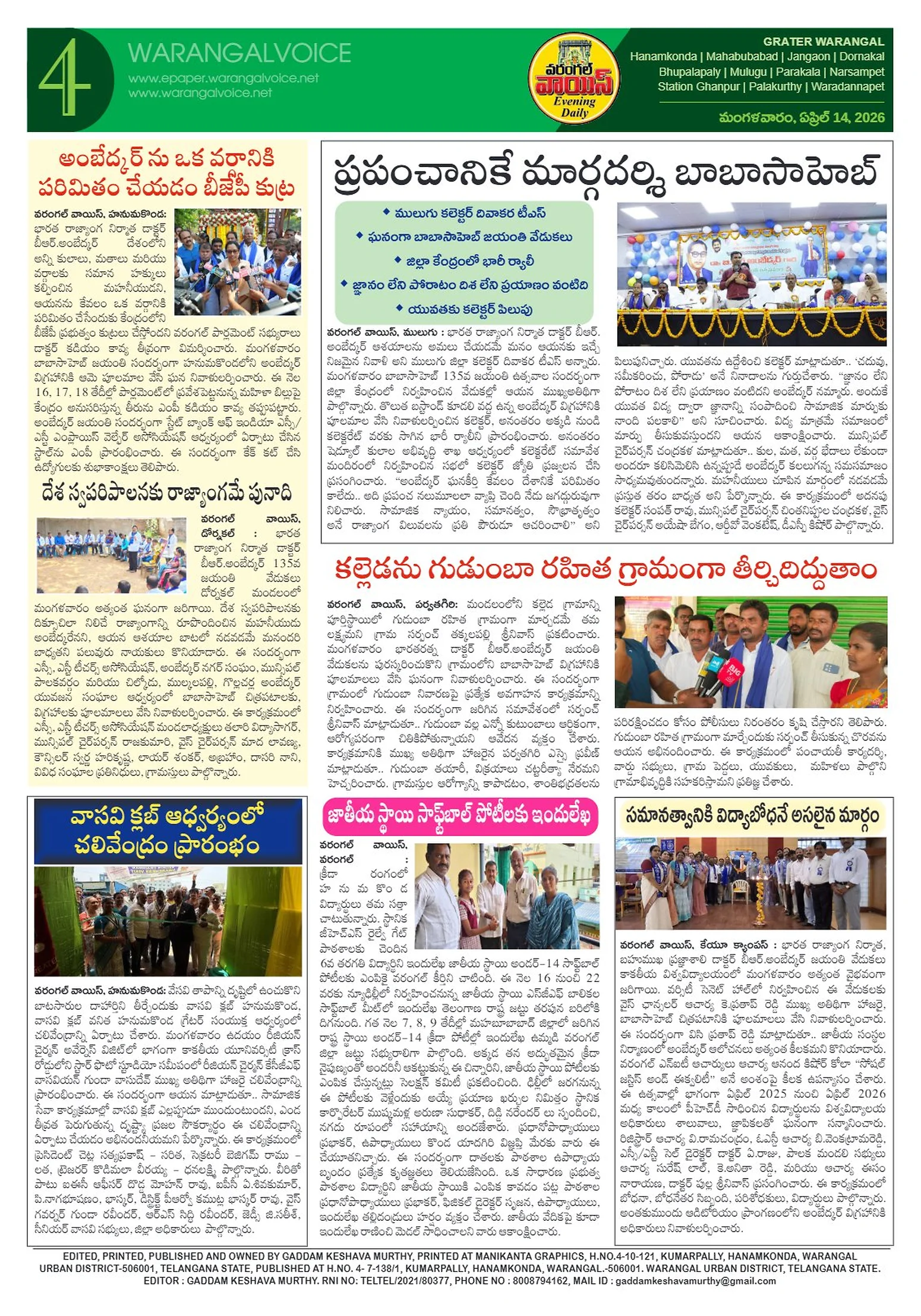 కాంగ్రెస్ కూటమి దిష్టిబొమ్మ దగ్ధంచలాన్లు లేవు.. కేవలం అవగాహనేజగిత్యాల కేసీఆర్ బహిరంగ సభను విజయవంతం చేయండిమహిళలు తమ కాళ్ల మీద తాము నిలబడాలికోటగుళ్ళ గోమాతలకు దాన బస్తాల వితరణ‘చలో కాళేశ్వరం – దేఖో మేడిగడ్డ’ఇరిగేషన్ శాఖకు కోర్టు షాక్మహిళా బిల్లును అడ్డుకోవడం చీకటి రోజుసమాజ సేవలో విద్యుత్ ఉద్యోగులుడీసీసీబీ ఉద్యోగుల ఇన్సెంటివ్ రికవరీ నిర్ణయం అన్యాయం